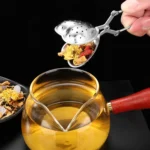 ਚਾਹ ਫਿਲਟਰ ਉੱਚ ਗੁਣਵੱਤਾ ਵਾਲਾ 304 ਸਟੇਨਲੈਸ ਸਟੀਲ ਡਰਿਪਰ ਟੀ ਇਨਫਿਊਜ਼ਰ ਸਟਰੇਨਰ ਡਬਲ ਹੈਂਡਲ ਦੇ ਨਾਲ