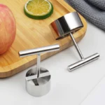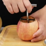 ใช้งานง่าย — วางปลายของเครื่องคว้านเมล็ดไว้ตรงกลางพื้นผิวเรียบ แล้วบิดเครื่องคว้านเมล็ดผ่านผลไม้หรือผัก บิดผักหรือผลไม้โดยใช้แรงกดมากหรือน้อย ขึ้นอยู่กับความหนาที่คุณต้องการ
